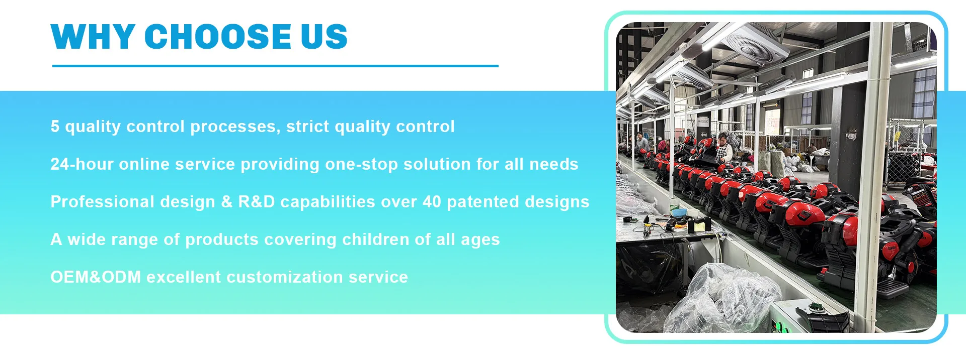 We are a professional manufacturer of children's ride-on toys and strollers, operating from a 5,000 sqm facility with 150+ skilled workers. Our diverse range includes electric cars, balance bikes, and strollers, all certified to ISO, EN 71, ASTM, CE, and CCC standards. Rigorous quality control ensures safety and durability. We offer OEM/ODM services, delivering innovative, child-friendly products globally.